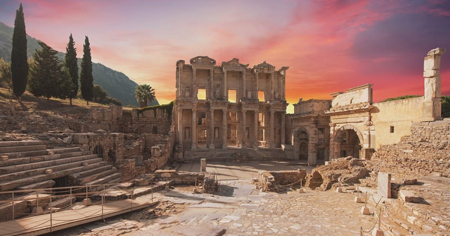Prima colazione in albergo. Visita a Efeso, con il Tempio di Adriano, la Biblioteca di Celsio, il Grande Teatro e l’Ephesus Experience Museum. Sosta in una caratteristica pelletteria. Pranzo in ristorante. Visita all’antica Hierapolis, ricostruita dopo il terremoto del 17 d.C., e a Pamukkale, con le sue vasche naturali formate dal millenario scorrere dell’acqua calcarea; qui sembra che il tempo si sia fermato e che le cascate di una gigantesca fontana siano pietrificate come suggerisce il nome del luogo che tradotto in italiano significa “fortezza di cotone”. Trasferimento in albergo e sistemazione in camera. Possibilità di usare la piscina termale. Cena e pernottamento.