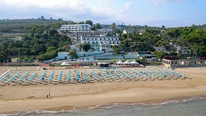 Una bellissima terrazza sul mare alle porte di Rodi Garganico. Immerso nel verde della pineta e della macchia mediterranea, si affaccia sul dorato arenile dell’omonima baia.  Spiaggia privata ad esclusivo utilizzo degli ospiti della struttura, attrezzata con ombrelloni, sdraio e lettini, docce e bagni. Di sabbia finissima e dal fondale marino dolcemente digradante, si adatta in particolar modo ai bambini.