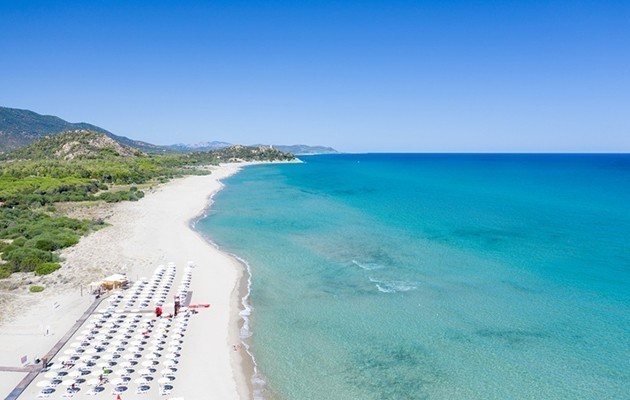 Il complesso, immerso nel verde di lussureggianti giardini e circondato da ginepri secolari, sorge nel caratteristico paesaggio della Sardegna sudorientale sulla costa di Muravera a soli 27 km da Costa Rei e 60 km da Cagliari. La lunga spiaggia di sabbia ed il mare cristallino con fondale leggermente digradante, sono particolarmente indicati per la vacanza di famiglie anche con bambini piccoli. La privilegiata posizione direttamente sul mare e l'effervescente Formula Club sono il perfetto connubio tra relax e divertimento. Spiaggia: Direttamente sul mare, ampia di sabbia, con fondale digradante, attrezzata con docce e servizi igienici. A disposizione degli ospiti diversamente abili: servizi igienici dedicati, passerella con estensione fino a 10 m ca dal mare, 1 sedia Job per facilitare l'accesso in acqua. Servizio spiaggia incluso nella Club Card a partire dalla 3° fila (1 ombrellone + 2 lettini a camera). Sistemazione: La struttura si sviluppa in 12 gruppi di piccoli edifici, composti da piano terra e 1° piano. Le camere sono dotate di aria condizionata, frigobar (allestimento su richiesta, consumazioni a pagamento), tv, cassetta di sicurezza, telefono, servizi con doccia e asciugacapelli, alcuni con doppio lavabo. Camere Classic per 2/4 persone (alcune quadruple con letti a castello), immerse nel verde o vicine ai servizi principali; camere Vista Mare Laterale e Vista Mare per 2/3 persone, adiacenti alla spiaggia. Disponibili camere (solo doppie) per diversamente abili. Ristorazione: Pasti con servizio a buffet e show cooking, snack pomeridiano ad orari stabiliti. Settimanalmente serate a tema con specialità regionali. Possibilità su richiesta di cucina per celiaci (forniti alimenti base, non garantita assenza di contaminazione). Acqua, vino e soft drink inclusi ai pasti principali (da dispenser). Formula Soft All Inclusive