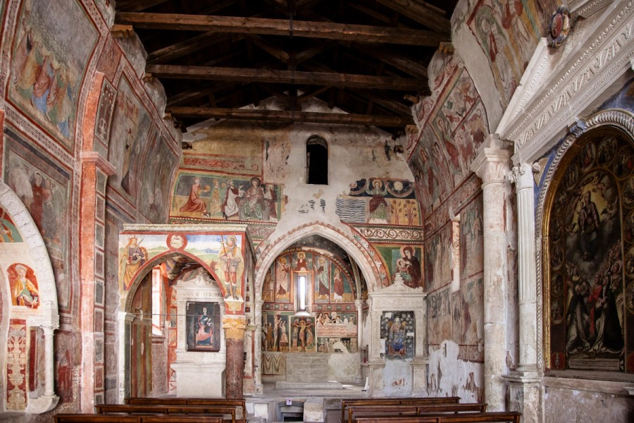 Nel pomeriggio trasferimento a Bominaco. Sosta per la visita libera del piccolo borgo medievale, sovrastato dai resti dell’antico castello, e dell’Oratorio di San Pellegrino nel cui interno si trova la Cappella Sistina d’Abruzzo (biglietto d’ingresso escluso), anche se per via delle sue dimensioni piuttosto contenute sarebbe più opportuno paragonarla alla Cappella degli Scrovegni di Padova. I temi qui rappresentati, oltre al calendario monastico con la personificazione dei mesi, sono gli episodi tratti dal Vangelo, l’infanzia di Cristo, la Passione, il Giudizio finale ed alcuni episodi della vita di San Pellegrino. Dopo la visita pomeriggio partenza per il rientro, arrivo previsto intorno alle ore 20.00.