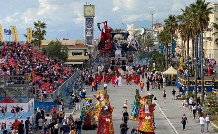 testimonianza delle capacità artistiche ed organizzative degli italiani nel mondo. La sfilata di carri a Viareggio è una tradizione che risale al 1873, quando alcuni ricchi borghesi decisero di mascherarsi per protestare contro le tasse: tra i giovani bene della città nacque l’idea di una parata di carrozze che fin da subito assunse carattere di sbeffeggio, in linea con la millenaria tradizione carnascialesca che ha lo scopo di mettere a nudo ed esorcizzare i problemi della società.